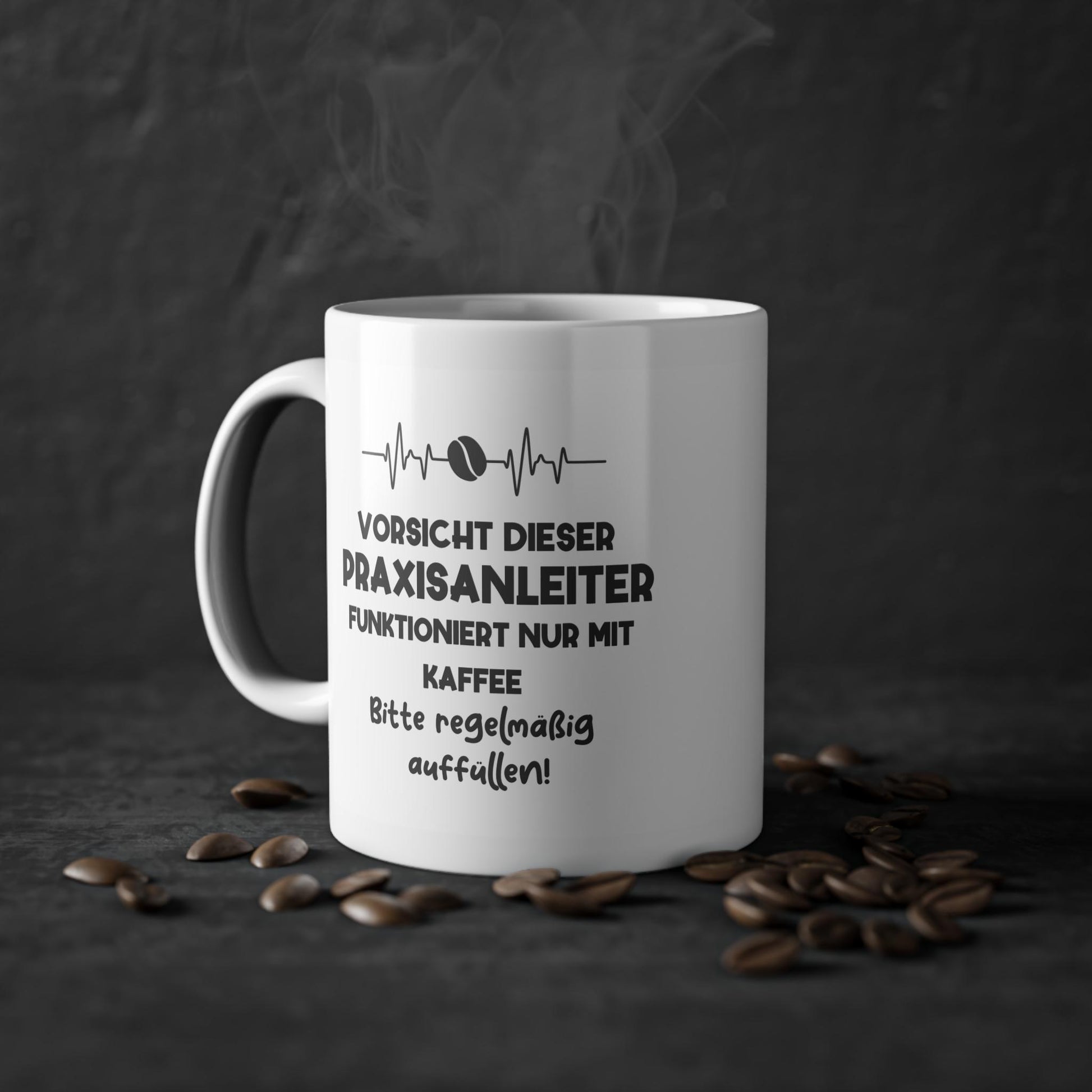 Praxisanleiter Tasse – EKG & Kaffeebohne | Personalisiert